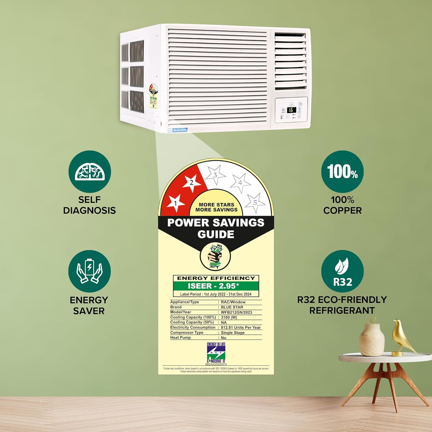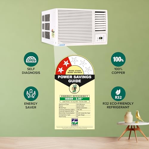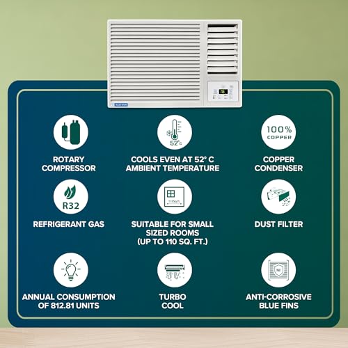 About this item Blue Star Window AC with fixed speed compressor: Economical, easy to install with multiple features and modes Capacity: 1 Ton, Suitable for small sized rooms (up to 120 sq.ft) Warranty: 1 year on product, 5 years on compressor (T&C) Copper Condenser Coil: Better cooling and requires low maintenance Refrigerant Gas: R32 – Environmental Friendly – No Ozone Depletion Potential