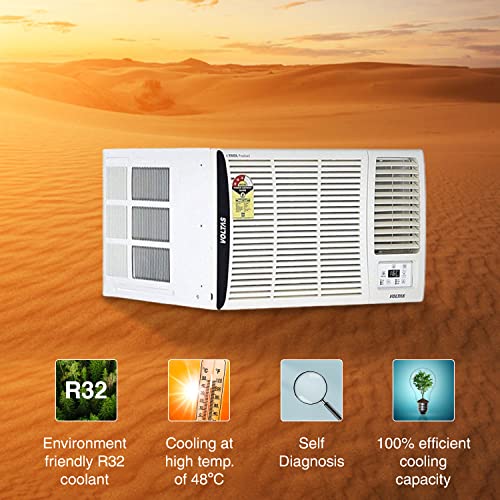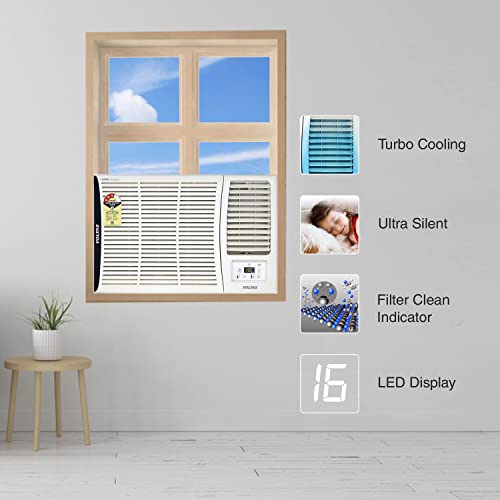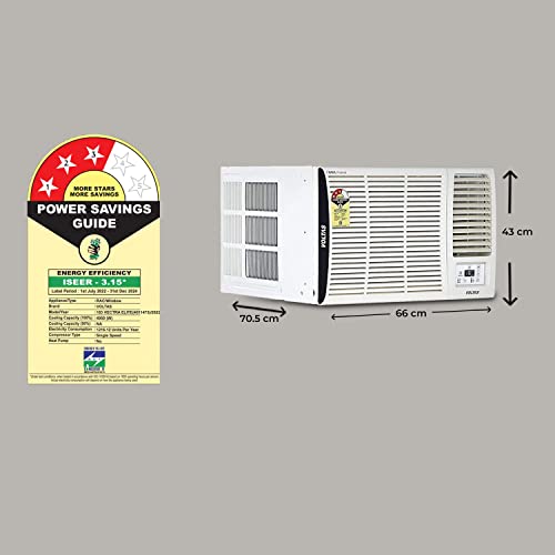 About this item Window AC: Economical & easy to install with auto swing feature that gives out cool air in every corner of the room Capacity: 1.5 ton Suitable for medium sized rooms (111 to 150 sq ft) & Ambient Temperature: 48 degree Celsius Energy Rating: 3 Star | Annual Energy Consumption 4950 Units per year | ISSER Value: 3.15 Warranty : 1 Year Comprehensive Warranty on the Product and 5 Years on Compressor Copper Condenser Coil: Better cooling and requires low maintenance, Prevents from rust & corrosion; Increase durability; Uninterrupted cooling Key Features: Stabilizer free operation within 230 voltage range; LED Temperature Display ; Noise Level: IDU – 56 (db) Special Features: Timer, Glow light button, Auto swing, Anti-Rust Coating, LED Display, Self Diagnosis, Sleep Mode, Turbo Mode, Easily Removable Panel, Low Gas Diagnosis, Ultra Silent, Ice wash, Filter Clean Indicator
