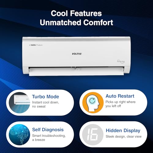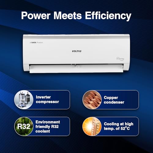 About this item Split AC with inverter compressor: Variable speed compressor which adjusts power depending on heat load. Convertible / adjustable with 4 cooling modes through remote control to operate in different tonnages for different cooling needs. Capacity: 1 Ton, suitable for Small Sized Rooms (110 to 120 sq. ft.). High Ambient cooling even at 52° Celsius. Energy Rating: 3 Star Energy Efficient. Annual Energy Consumption: 672.93kWh/year. ISEER Value: 3.80 Warranty : 1 Year Comprehensive Warranty on the Product, 10 Years on Compressor and 5 Years on PCB. Copper Condenser : The copper condenser ensures superior heat transfer while minimizing maintenance needs. Its rust- and corrosion-resistant properties enhance durability, providing uninterrupted cooling. Key Features: 4 Adjustable Cooling Modes, Digital Temperature Display, Hidden Display; Wide Operating Range 110V -285V voltage range, Noise Level IDU – 44/43/42/38 (dbA) Special Features: Anti Dust Filter, Antimicrobial Protection, Anti-Corrosive Coating, LED Display, Self Diagnosis, Sleep Mode, Turbo, 4 Step Adjustable Cooling, Memory Restart, Anti-freeze thermostat
