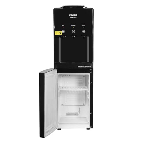 About this item Built For Durability: The Voltas Water dispenser is constructed with a durable long plastic body and front panel and SS304 inner body material, assuring longevity and robustness. Energy Efficient Design: The dispenser uses a low 500 watt energy consumption to provide both cold and hot water as per your need, making it ideal to use in both summer and winter seasons. Convenient Dispensing Design: Designed with three dispensing faucets to deliver hot, normal and cold water whenever required, ensuring ease and convenience. Dispenser Lock: Designed with a hot water safety lock for added protection and hassle-free use Silent Operation, Anti Corrosive Pre Coated Body Refrigerated Storage/Cooling Cabinet: The cooling cabinet that comes along with the product offers ample storage for your daily food essentials. It comes with wired shelves that can be taken out while cleaning, for added hygiene and ease. Water Spillage Tray For Collection of Water Drips: The voltas dispenser is designed with a water collecting tray that collects excess water/water wastage while filling up water bottles etc. This can also be easily removed for maintenance.